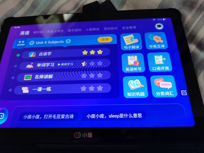 3、读书郎C6A学生平板宝贝很好,物流也很快,送给小孩子过年的礼物大屏幕很清晰,有好多学习功能,发现里面有一个英语评测,孩子跟着机器读英语,并且自动评分,上面的资源和课本同步,还带了视频刚收到机器里面的功能太多了
