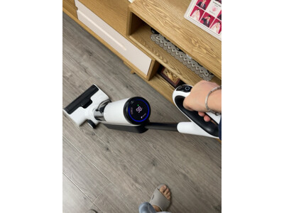 2、德尔玛洗地机p60max和添可空间机器出乎意料的好用,升级后比11感觉进步明显,客服觅糖糖服务太好了,很有耐心,解决了很多顾虑,非常感谢家里有同牌子的除螨仪,非常好用,所以大胆入手了这个洗地机,买之前因为机子的重量有点犹豫,用了之后简直太惊喜了,因为有牵引功能,启动后超轻,所以大家不能只看机身重量,我原来用的洗地机重量才3.6,机子基本是塑料做的,质量不行不说,没有牵引力,肩颈不好的人,拖个地手都要废了。这个洗地机材料很好,下面出了滚盖之外都是铁的,坚固耐用,有牵引力,拖地不费力。声音也小,显示屏比较容易看,其他牌子显示屏在前面的很难看到,还有,免踩脚这个也是挺好,不过费点手力。评论说的自清洁后要手动擦拭装滚的地方,我只能说,任何牌子的都一样了。烘干功能个人觉得没有达到自己的期许吧,干了很多,但是还是要拆出来晾晒,要不还是有异味。毛发切割功能真心不错,少缠绕,滚和机子寿命也会长吧。写了这么多,希望对想买的朋友有所帮助。