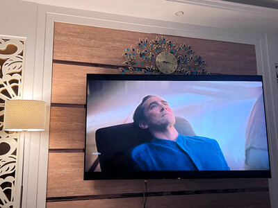 4、海信75S30电视机买来买去,还是海信的电视最适合,屏幕清晰度高,色彩还原真实,功能齐全,使用方便,外观高端大气上档次,摆在客厅立马提升一个档次。大前天坏的老电视,昨天上午下的单,今天就送到包装好了!非常满意!用了几个钟了.电视的反应和色彩都很满意,特别是那个一一小T小T一一语意控制特别好玩!很满意的一次购物!