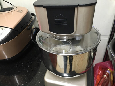 1、建议大家入手乔立L5厨师机为了揉出手套膜,败了这个回家确实比手揉省事多了,很快就能出手套膜机器目前最大只开到四档,声音很小只是抬头的按钮,不是很好用,得用巧劲儿才能按下去