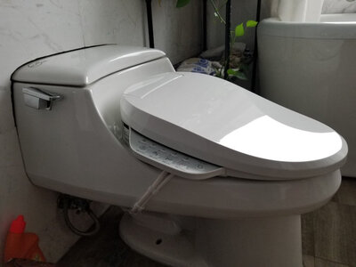 4、松下PQTK30智能马桶盖使用效果非常满意。安装很方便,自己动手很快就装好了,对马桶的适应性很广,家里的80年代老式分体马桶同样可以安装使用。不足是没有感应功能,大人使用问题不大,如果家里有顽皮小孩去乱按就比较麻烦。上午下单,下午就到了,京东快递就是快啊!到货迫不及待拆箱了,看了看就动手自己装了,配件,安装方法很简单,人性化,关键是便器周围有水管和八字阀和电源插座,水路也好接,连生料带都不用,都是标准间密封胶垫。这款智能马桶盖物美价廉,性价比高,点赞!