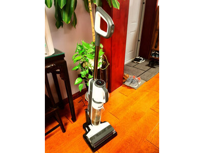 3、戴森V12家用洗地机买了增配版的slim2.0,小户型完全够用,配件多沙发的边边角角都可以用它来吸尘,每次基本一箱水就够用了,配上赠送的清洗液,拖完的地非常干净,而且还有一股香味,比用抹布擦地省水可不是一星半点儿。自清洁后的滚轮洗的很干净,偶尔需要手动摘一下上面的毛发,污水桶也很好清理,老人用着也很方便,语音提示简洁智能。主机重量也不重,家里两岁半的孩子都能提起,总之用过体验感很好。