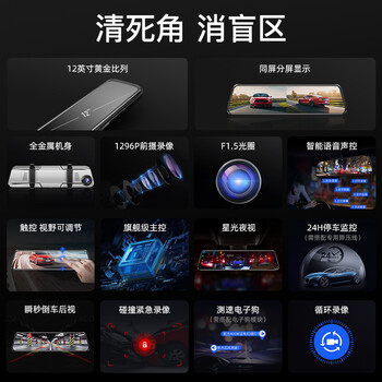 凌度行车记录仪HS996E 12英寸全屏触摸屏 1296P高清夜视 流媒体后视镜 前后双录倒车影像 语音声控 停车监控到手价格不高于419元。
