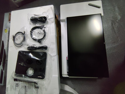 3、HKC S2416Q显示器到家拆箱,还是很惊艳,虽然背面看不到,还是很喜欢背面的设计,显示器打开,边框很小,非常适合多屏使用,用了半天,目前没发现啥缺点,屏的色彩不错,这是我认可的,在我用过的HKC显示器里,目前是最好的!