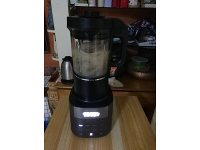 4、九阳P919破壁机头天下单第二天上午就收到了,机子很高大,收到就洗了,然后做了海拔测试,下午就用了两个小火龙果加安慕希酸奶和蜂蜜打的奶昔,四百毫升的杯满满一杯,酸酸甜甜很好喝,今早又打了米糊,用的红豆十克花生十克枸杞五克,再加上小米和大米各一点,加水至800毫升,显示屏先是—上下翻动,后面就显示16:59开始倒计时了,打好加点糖再按调速打一秒就倒出来,再加水按清洗,喝完再去洗很好洗干净了外观外形:挺高档的 声音大小:声音很小 打磨口感:非常细腻 产品功能:功能简直太全了 想吃什么都可以自己做了特别推荐购买外观外形:挺高档的 声音大小:声音很小 打磨口感:非常细腻 产品功能:功能简直太全了 想吃什么都可以自己做了特别推荐购买