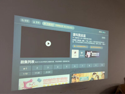 5、明基mx560和e320买了F5 。家里的幕布还没安装、投影到一面墙上。达到我想要的效果。另外、我最关注的投屏功能也很好用。