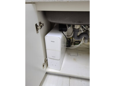 4、滨特尔S260净水器昨天下的单,今天下午就送到家了,不一会儿师傅很快就来家里安装了,产品很漂亮,静音方面也很到位,关上柜门基本上听不到声音,另外装了一个分水净水器,等中央净水器送到后安装了再拍照,目前感觉比较满意!安装很娴熟,很快就装好了,终于可以喝到纯净水了,这款是智能的,龙头上有颜色的灯,蓝色是干净的,等到变红就要换滤芯了,前置滤芯半年,后面滤芯一年,出水也可以的!看看后期烧水瓶里会不会有结痂就知道过滤效果如何了!