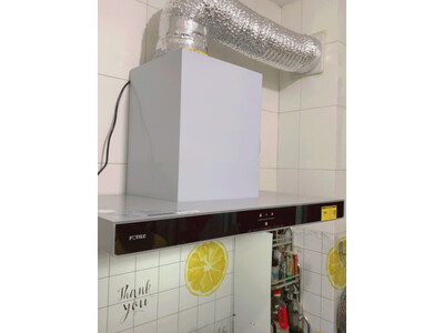 4、万家乐CXW-300-AK6油烟机物流挺快的,昨天下的单,今天就送到了。也很快到家里来安装好了,由于和以前的烟机款式不一样,师傅想尽办法帮我把柜子移了,把铝扣板给拆了,然后安装好。给师傅手动点赞。