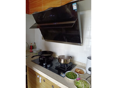 5、老板32b6x燃气灶与32B2油烟机效果非常好,比老款的油烟机效果好多了,油烟全部吸进去了,一点都没有散外面来,是家庭主妇的福音,噪音不大,很安静,而且手不需要按按钮,解放了双手,油烟也不会沾到手上,即便是爆炒辣椒,餐厅也没有一点气味。