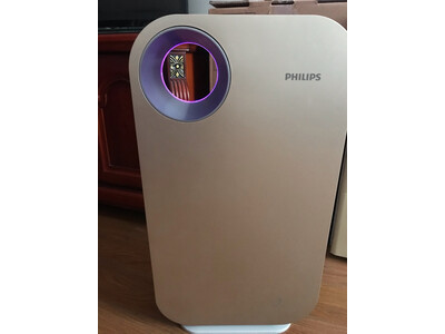 4、美的KJ400G-Z1 Pro空气净化器下单后第二天就收到了,东西很精致,虽然没有电子显示屏, 但是功效基本一样,性价比比较高,一会变红,一会变蓝,看来还是有效果,而且很静音,还在使用中,观察下看看